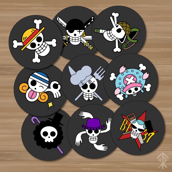 Zarpá en tu propia aventura con esta colección de stickers inspirada en One Piece. Cada diseño representa el emblema de un personaje o grupo icónico de la serie: desde el sombrero de paja de Luffy hasta el estilo cibernético de Franky, todos con un toque moderno y lleno de color.